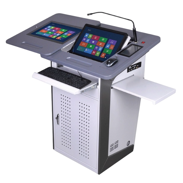- Bục giảng thông minh tích hợp được tất cả các thiết bị hiện đại như: bộ điều khiển thiết bị trung tâm, màn hình LED cảm ứng, PC, loa, mic, bộ điều.khiển âm thanh hay bộ kết nối hiển thị không dây với chức năng và vai trò khác nhau.